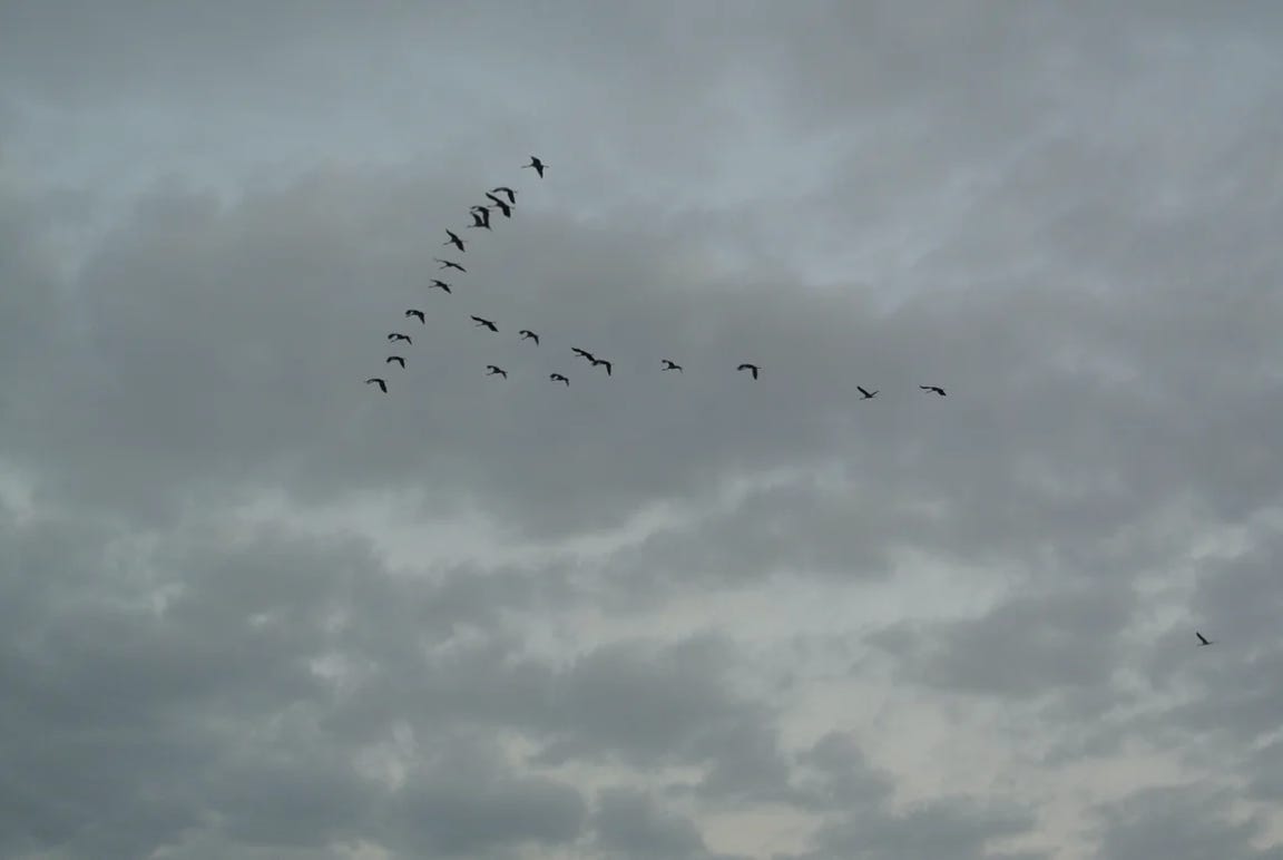 Die Flugformationen sind einzigartig. Hier sehen Sie eine Kranichformation im Oktober.
